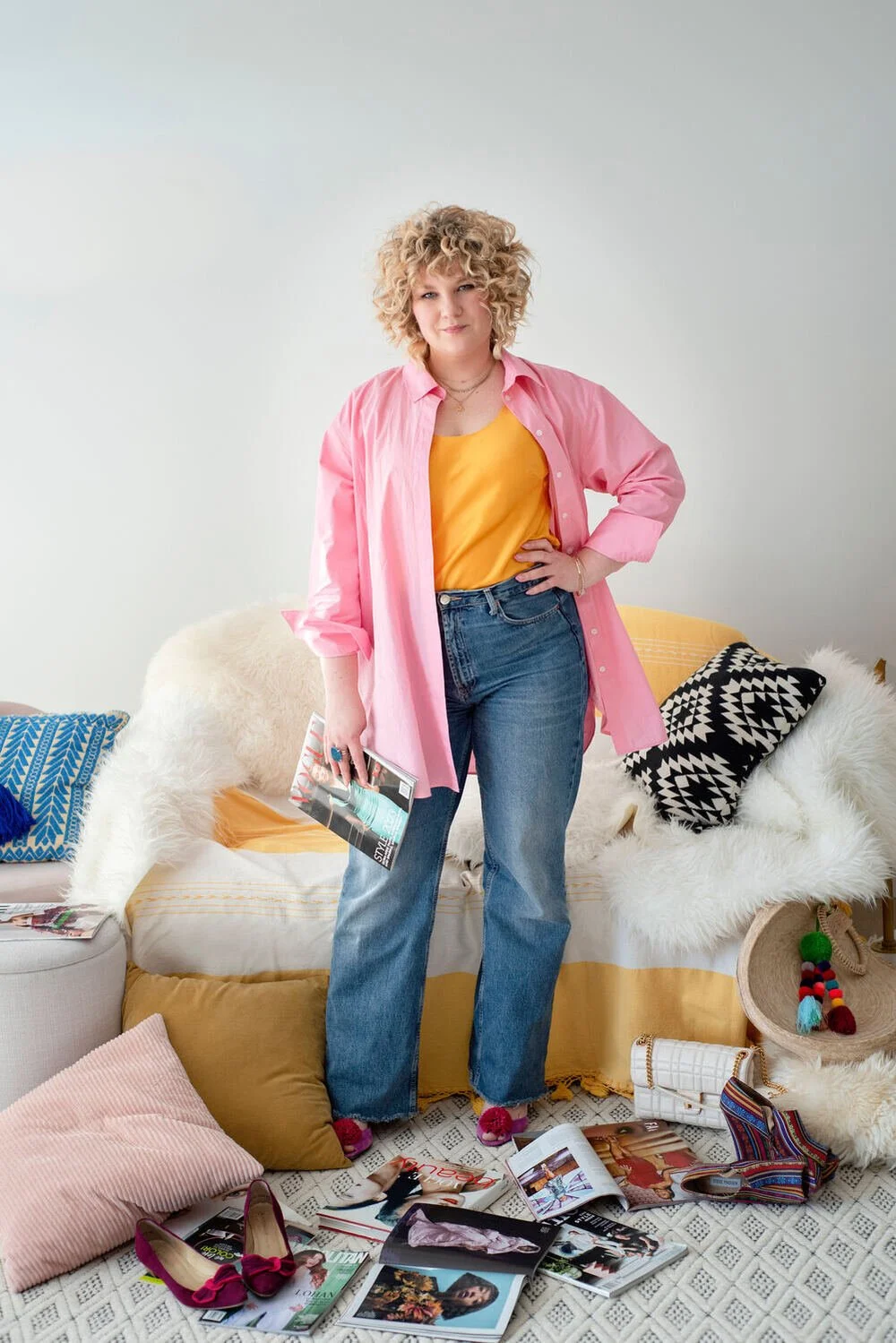 I think it starts with wearing what actually feels good. Soft fabrics, fun earrings, colors that make you happy. Clothes that fit your body now. Even just putting on something you love, instead of saving it for later, can totally change how you feel. Style should feel like a little treat, not something you have to earn.